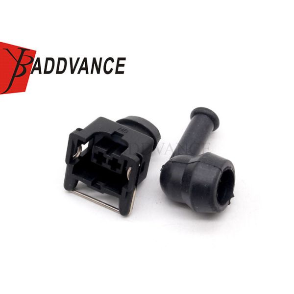 Female Waterproof 2 Way EV1 Fuel Injector Connector Housing With 90 Degree Rubber Boot