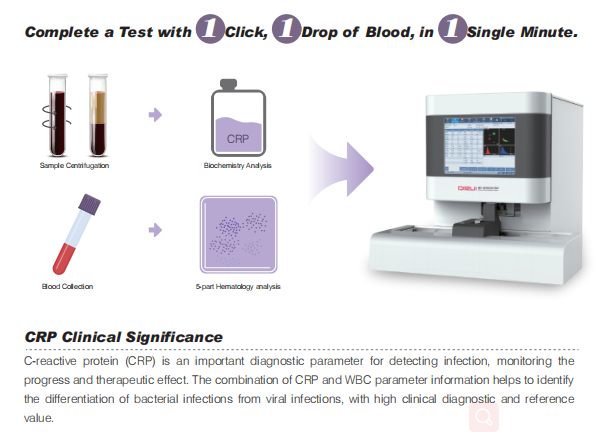 ● Only 30 μl sample volume for CBC + DIFF +CRP measurement