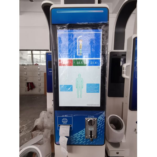 SH-V15 model is one of Face Recognition scales. The basic function for this model weight, height, Body Mass Index. The highlight for the product is that It has a large 19 inch LCD touch screen which can display measurement result, advertising videos and pictures, etc. Owners can set Coin operated measurement and coin number for once. It's the best choice for a quick health checkup for public, and suitable for public advertising.