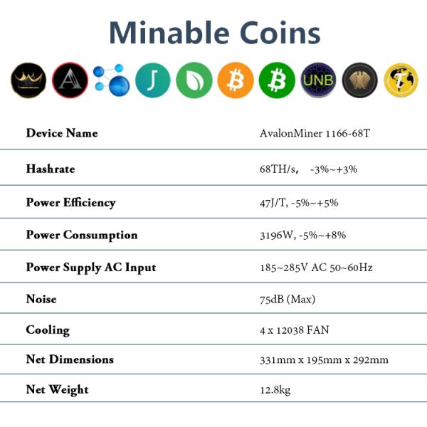 Hashrate | 68TH/s, -3%~+3% |