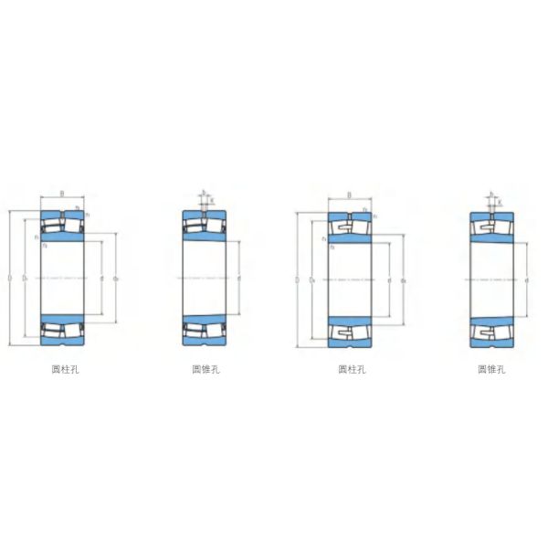 Spherical roller bearings with tapered bore bore with the rear code K and K30 installed on the matching adapter sleeve become rear code K+H type and K30+H type bearings. These bearings can be mounted on a smooth shaft without a shoulder and are suitable for applications where the bearing needs to be mounted and dismounted frequently. In order to improve the lubrication performance of the bearing, there are annular oil grooves in the outer ring of the bearing and three evenly distributed oil holes are drilled, the post-code is W33.