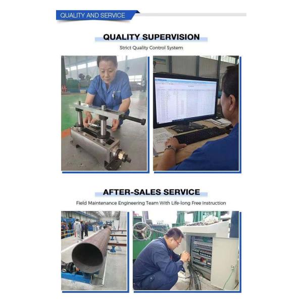 The working principle of the stainless pipe making machine: the belt material is introduced into the pipe welding machine through the feeding machine, and the belt material is extruded through the roller, and then the argon arc welding mixed gas is used for welding and rounding, the required length of pipe is output, the cutter mechanism is used for cutting, and then the straightening machine is used for straightening..