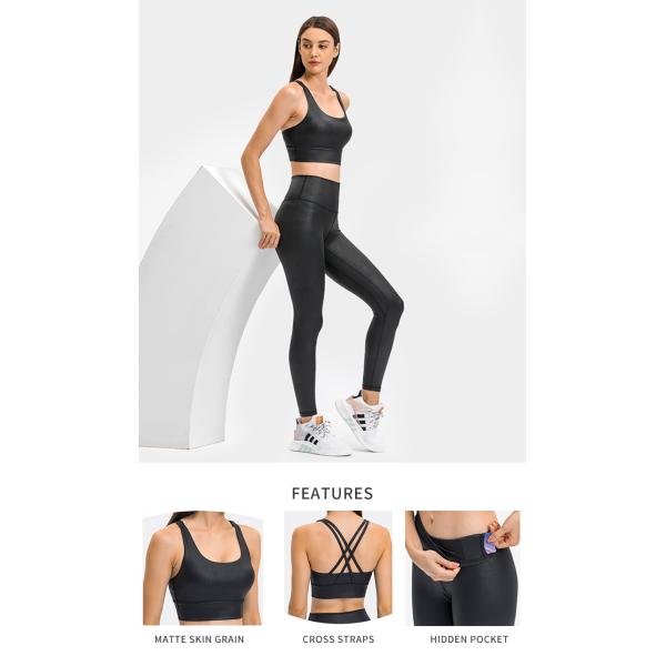 New Leather High-quality Texture Cross Back Energy Bra High Waist Align Yoga Leggings Gym Fitness Set