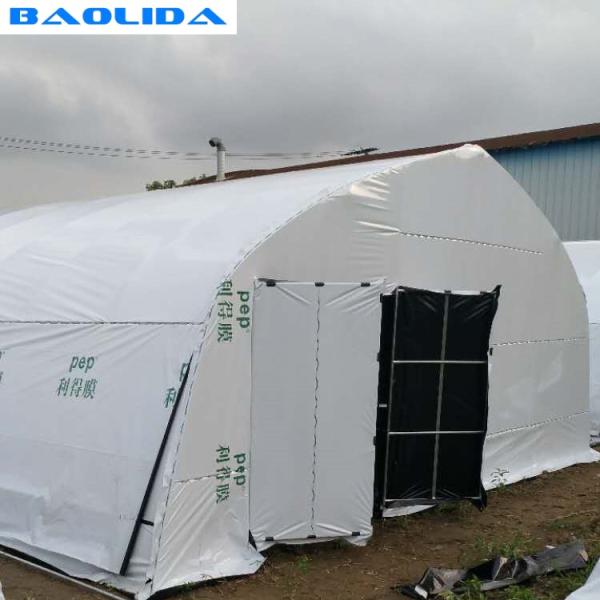 It was transformed from the regular Tunnel Greenhouse. The surface is covered with opaque Black and white Film, so as to achieve the effect of no light. It also has the advantages of the ordinary Tunnel Greenhouse, which is very easy to install and disassemble, and is low cost.