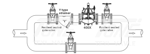 400X flow control valves are automatically actuated. Flow control valves limit the flow rate in the pipe line to a preset rate, regardless of upstream pressure variations. The valve is controlled by pilot valve , which takes us of integrated orifice plate to detect flow rate represented by differential pressure, and the differential pressure is used to control pilot valve to implement flow rate control.