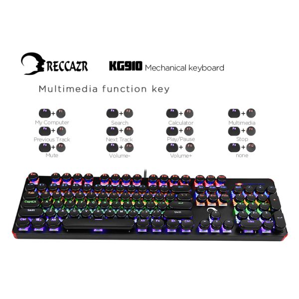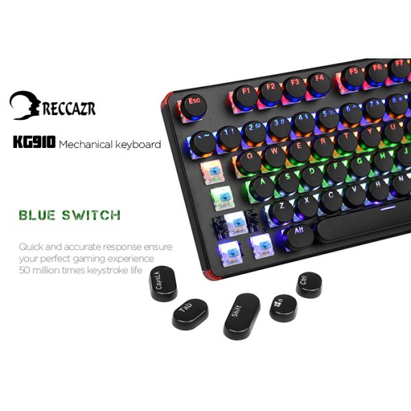 Reccazr KG910 Mechanical Gaming Keyboard Blue Switches Retro USB Typewriter 104 Keys LED Backlit Gaming