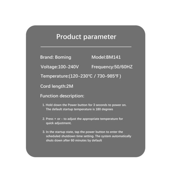 The boming BM141 Hair Straightening Tools is a revolutionary product that combines the latest technology with sleek design to give you the perfect hair straightening experience. This Ceramic Hair Straightening Iron is designed to provide a smooth and effortless straightening experience, while also protecting your hair from damage.