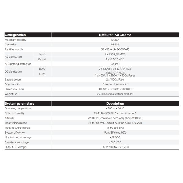 The Vertiv™ NetSure™ 731 CK2 is a standalone indoor DC power system