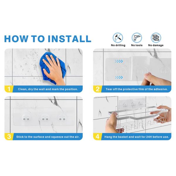 | 4. Size | One size of shower caddy is 30.0L x11.43W x11.43H cm (11.8L x4.5W x4.5H inch), the other size of shower caddy is 32.0L x13.46W x10.41H cm (12.6L x5.3W x4.1H inch), soap holder size is 14.48L x9.90W x5.08H cm (5.7L x 3.9W x2.0H inch), toothbrush holder size is 10.92L x7.11W x13.46 cm (4.3L x2.8W x5.3H inch) | ||