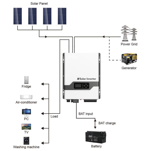 In off-grid settings, solar hybrid inverters can function