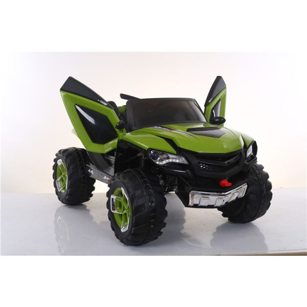 card, MP3, early education, 2.4G remote control, four-wheel high-strength shock absorber, handle, scissor door, cool lighting and balanced swing. |