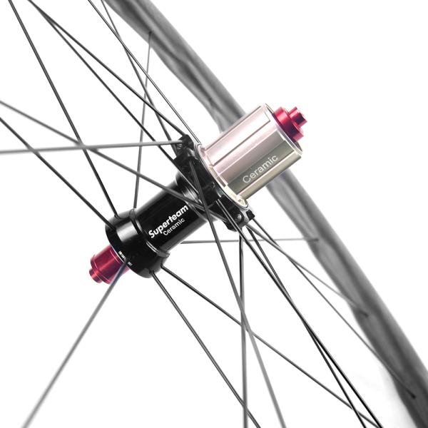 Carbon Fiber Superteam Road Bike Wheel Set 25mm Width 50mm Depth Ceramic Bearing Hubs