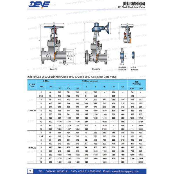 | Standard | BS1873/ /BS 5352 cast and forged Globe valve BS1868 check valve API600 Bolted Bonnet Steel Gate Valves for Petroleum and Natural Gas Industries API602 Forged Steel valves API603 Stainless steel valve API6D Gate valve, Plug valve and Ball valve API609 Butterfly valve API594 Wafer, Lug check valve |