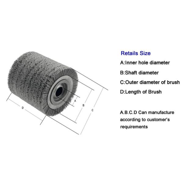 The high-performance abrasive roller brush excels in a wide range of applications. It boasts exceptional efficiency in removing paint, creating antique or wire-like textures, rejuvenating various wood grain patterns, and eliminating burrs from wood surfaces. Moreover, its versatility extends to handling oxidation layers, decontaminating both metal and non-metal materials, and eradicating rust from diverse products. With its high-density abrasive wire construction, this brush ensures outstanding bristle toughness and long-lasting durability. Notably, this product stands out for its utilization of optimized materials, meticulous craftsmanship, and extended service life.