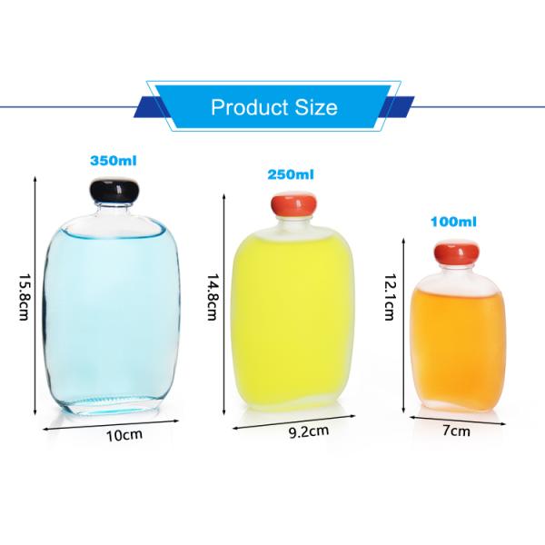 The flat and round glass juice bottle has a unique shape and is easy to hold. High-quality glass material maintains the original flavor of the juice. Plastic sealing cap to prevent oxidation and contamination. Colors can be customized to add a personal touch. Moderate capacity, suitable for personal or family use. Easy to clean and disinfect, durable. Fashionable home decorations improve the quality of life.