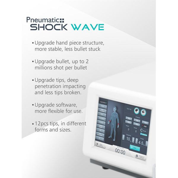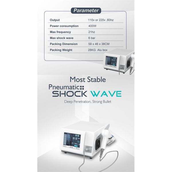 Pneumatic ballistic shock wave instrument is compressor generated pulse sound waves into precise ballistic, compare with the electromagnetic shock wave, more energy generated max to 6 bar. And also impact faster, configuration higher and more expensive.