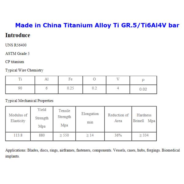 | Grade: | Titanium Alloy |