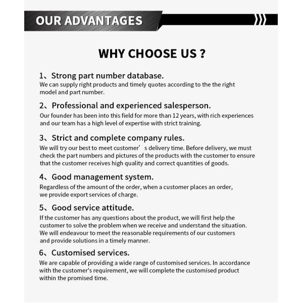 Until now, our products enjoy a high reputation and have been exported to more than 125 countries and regions, spreading all over the Middle East, Southeast Asia, Africa, North America, South America, Europe and Oceania with its own brand "Belparts" which are widely acclaimed by foreign customers.