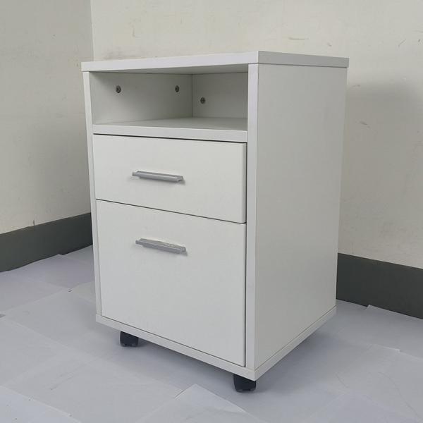1.Wooden 2-Drawer Mobile Cabinet, a perfect addition to any modern office or home workspace. Designed with both aesthetics and functionality in mind, this cabinet is crafted from high-quality melamine board in a sleek white finish. This material is renowned for its durability, resistance to wear, and easy maintenance, making it an ideal choice for a busy work environment.