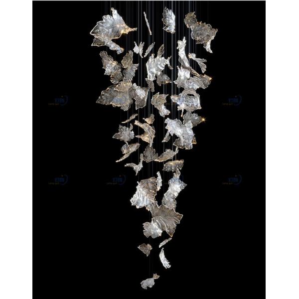 Introducing the Modern Leaf-Inspired Glass Pendant Light, a stunning piece of art for your home or office space. This pendant light features multiple transparent glass pieces shaped like leaves, each meticulously designed to capture and reflect light in a mesmerizing way. The glass leaves hang gracefully from slender metal wires, creating a sense of movement and dynamism. As light passes through and bounces off the glass, it creates a dazzling array of reflections and shadows, adding depth and texture to the surrounding space. The pendant light's sleek and modern design complements a wide range of interior decors, making it a versatile addition to any room. Whether you're looking to illuminate a dining area, living room, or even a commercial space, this light will make a lasting impression with its unique and artistic appeal.