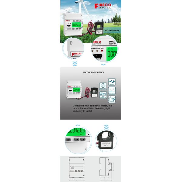 smart bi-directional modbus electric energy meter