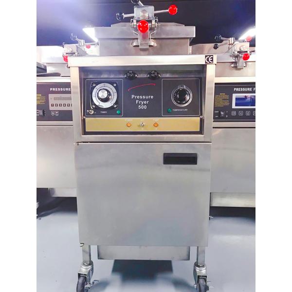 PFG-500 chicken pressure fryer is mechanical panel ,easy operation ,do not need program , Frying under pressure lowers the cooking temperature, extends the life of the oil, and speeds up cooking to meet peak demand,Under pressure, it also seals the natural juices of food and reduces oil inhalation into the product,heating by LPG gas or natural gas .high efficiency .auto accurate control time and temperature ,auto exhaust pressure when cooking done . The whole body of 304 stainless steel .Maximum frying temperature up to 200℃.Fryer installed inside a filtration system, can auto filter oil and clean oil come back to pot automatically by pump,extend the life of frying oil, improve food quality, reduce the cost of oil .It is commonly used in fried foods restaurants, hotel and other catering eatablishments.