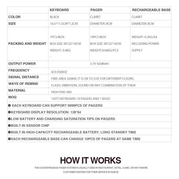 2. MOQ is 1 set which including 1 keyboard, 20 pagers