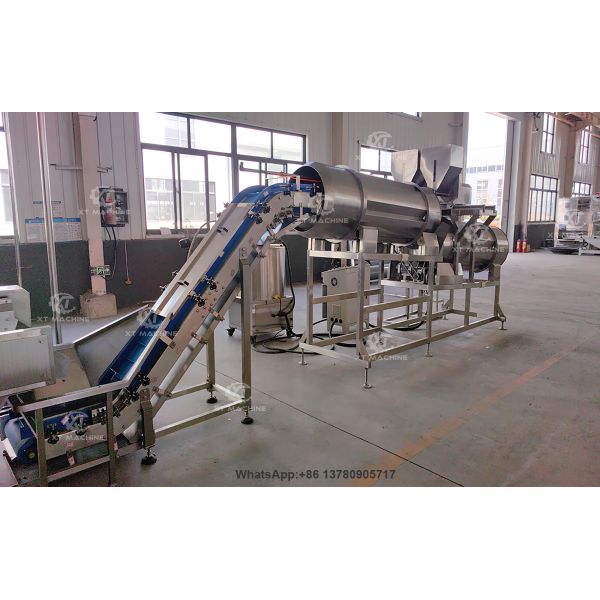 This is a fully automatic production line for coating, roasting, seasoning, drying,cooling, The automatic coating machine replaces the traditional manual coating. This line not only enhances efficiency but also guarantees the quality of the final products. The automated process ensures that each peanut or cashew nut is uniformly coated, Maintaining the highest standards of taste and texture. Moreover, the machine’s design minimizes waste and optimizes the use of ingredients, making it a cost-effective solution for our customer.