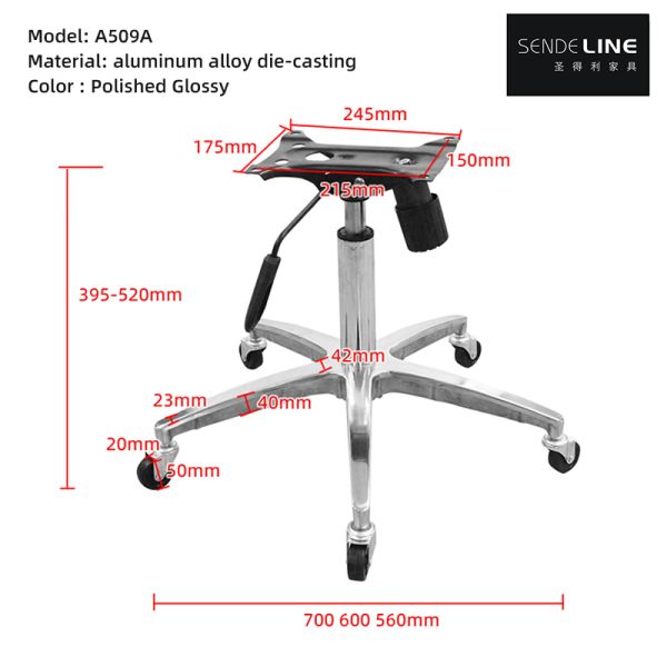 Sendeline's Office Chair Metal Base (Model: A509A-1) is a versatile and durable product suitable for a variety of office settings. Crafted from high-quality aluminum, this five-star shaped base not only provides stability but also exudes a polished appearance that enhances the overall aesthetic of any workspace.