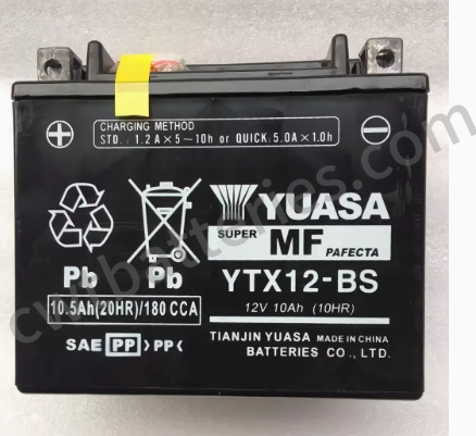 Yuasa YTX12-BS Battery is a high-performance motorcycle battery produced by Yuasa, a well-known battery manufacturer. This battery is designed for motorcycles and is widely used in various types of motorcycles, ATVs, snowmobiles and other small power tools. It supports the power supply for engine starting, lighting systems, signal systems, etc., ensuring that the vehicle can start smoothly and operate normally when needed. The battery voltage is 12V and the capacity is 10Ah (10 hour rate). This means that the battery can provide 10 hours of power support under standard usage conditions, which is suitable for the power needs of most motorcycles. The CCA value is 180A, which means that the battery can still provide sufficient starting current in cold environments to ensure that the motorcycle can start smoothly in low temperature conditions. A higher CCA value indicates that the battery has a stronger cold starting ability.