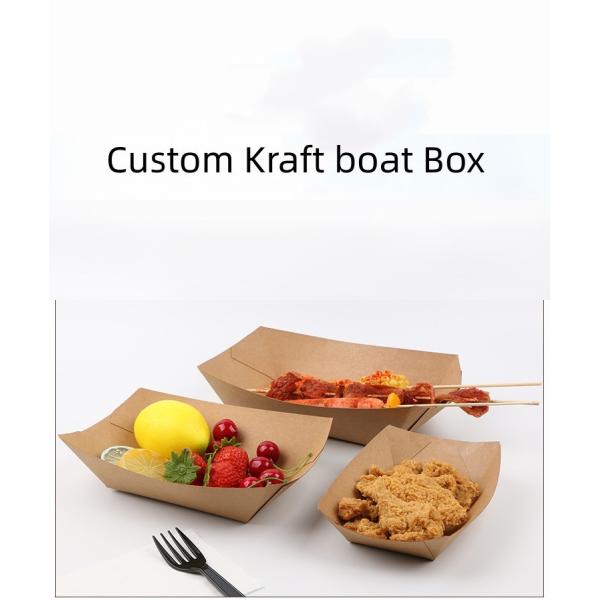 Custom Printed Eco-Friendly Fast Food French Fries Kraft Paper Boat Serving Container Packaging Box with Paper Cardboard
