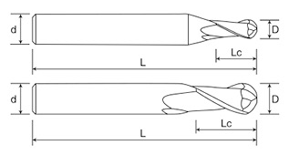 | Sizes | Cut Diameter D | Cut Length Lc | Shank Diameter d | Overall Length L | Flutes No. |
