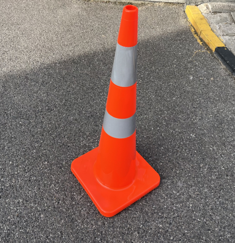 High-visibility plastic safety barrier cones designed for road